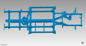 Durch die Größe des Bauteils, kam nur ein flexibler 3D-Scanner für die Vermessung in Frage. Die Wahl fiel auf den HandySCAN 3D von Creaform, den 3D-EAS erst im Vorjahr angeschafft hatte, um sein Dienstleistungsangebot zu erweitern und flexibler auf Kundenanforderungen reagieren zu können. Das 3D-Scansystem hat eine Genauigkeit von 0,025mm, ist flexibel einsetzbar und kann problemlos im Handgepäck auf Reisen zu Kunden mitgenommen werden, um an Ort und Stelle zu scannen. Zuvor wurden Vermessungen mit einem Messarm mit Laseraufsatz durchgeführt. Aufgrund der Größe des zu messenden Rahmens hätte dieses Projekt mit dem Messarm nur schwer durchgeführt werden können. Da der Messarm ein starres Setup benötigt und in seiner Reichweite eingeschränkt ist, wäre die Messung kompliziert und zeitaufwändig gewesen, da der Arm immer wieder um das Bauteil herum neu positioniert und kalibriert werden müsste.
