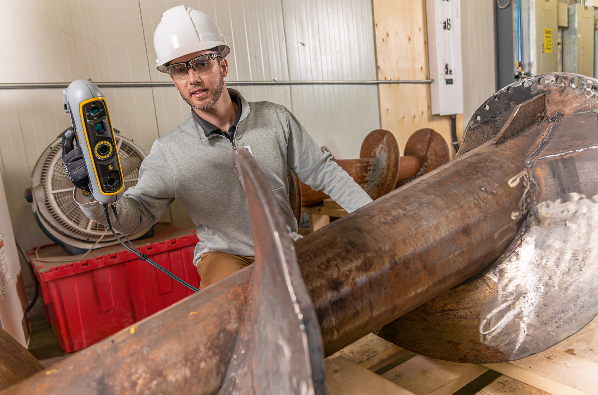 Da die zu inspizierenden Teile und Gusse groß und schwer zu beweglich sein können, muss der Anwender die Möglichkeit haben den 3D-Scanner problemlos in die Produktionshalle, an die Messstelle oder in die Werkstatt zu tragen. Außerdem sollten sich die Messergebnisse nahtlos und mit einfacher und müheloser Datennachbearbeitung in bestehende Workflows integrieren lassen.