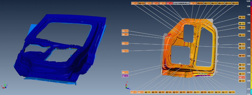 People in the industry know that in the mold verification process, the mold’s clamping gap is an important indicator for testing molds. However, the clamping gap is formed when the upper and lower molds are closed; it is usually impossible to capture 3D measurements using traditional measuring equipment. Because the traditional detection method is to paint on the sheet metal and check the colour change after stamping, some anomalies can remain undetected. Another method is to collect data through a coordinate measurement machine (CMM) and then compare it with the original design. However, in addition to being time-consuming and labor-intensive, this process is completely dependent on the experience level of the operators. In addition, it is impossible to quickly obtain accurate and complete data right on the production floor.