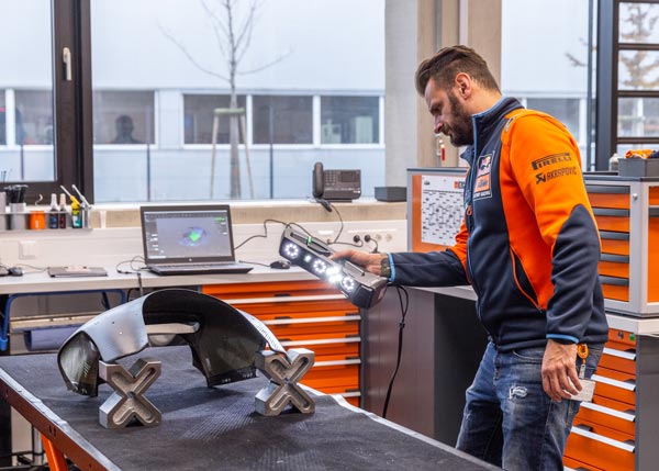 Now, KTM Motorsport’s design and product development team can make improvements by scanning almost every part and bringing the Go!SCAN 3D wherever they go. The benefits they get compared to before purchasing the Go!SCAN 3D are significant. “We can make adjustments to components where we had not previously thought of doing so before,” adds Sebastian Witt, head of Quality Management Motorsport at KTM AG, who was thrilled to show us their newest sport motorcycles.
