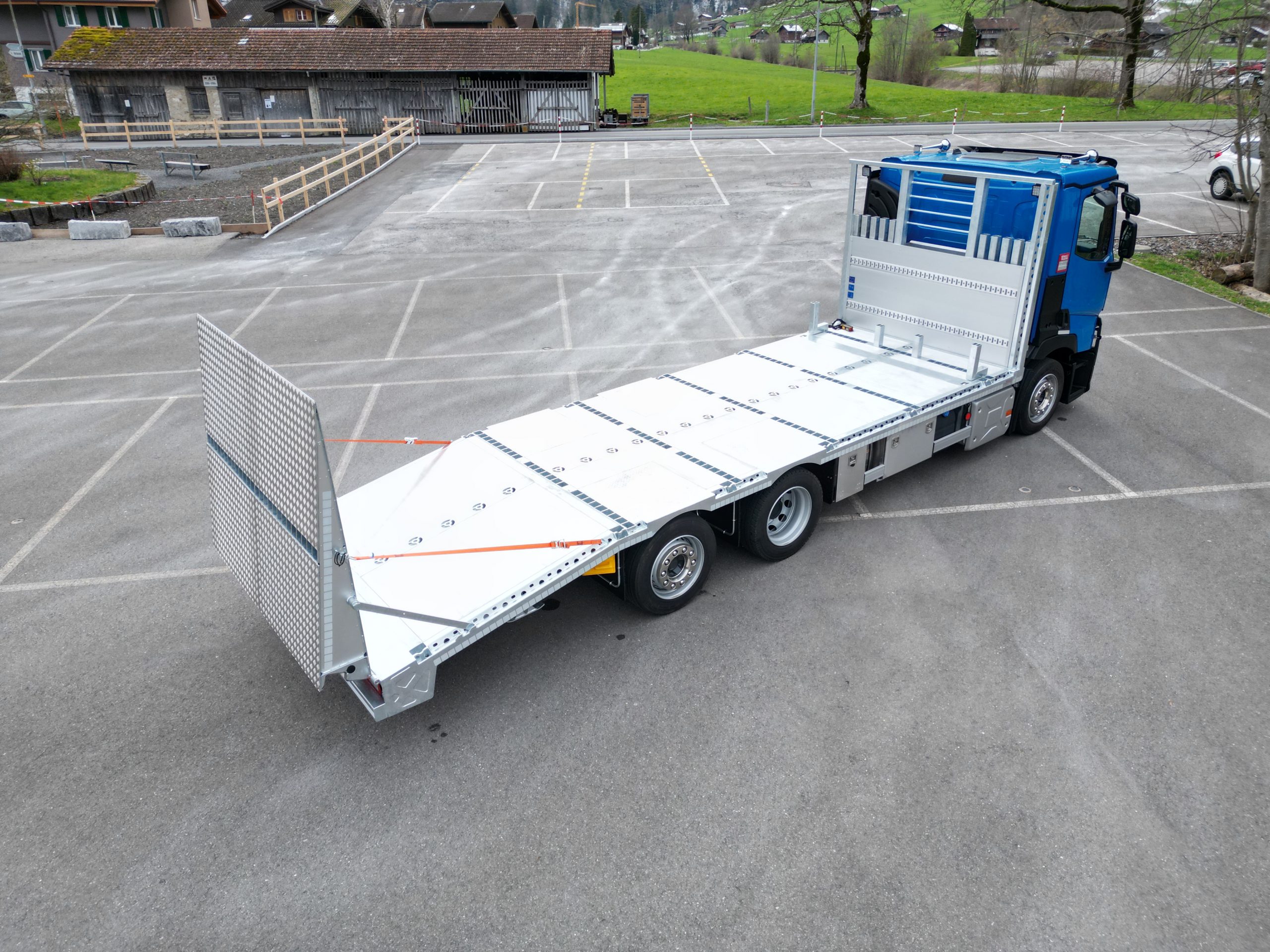 Debido a los actuales problemas de entrega del fabricante de vehículos, el proyecto “Vehículo para transporte de maquinaria de construcción” se creó con limitaciones de tiempo. Esto significó que el departamento de ingeniería tuvo que realizar mucha preparación previa utilizando diseños CAD. Cuando llegó el vehículo, se alcanzó rápidamente un estado de diseño avanzado y la propia área de producción construyó algunos soportes adicionales para cajas de herramientas.