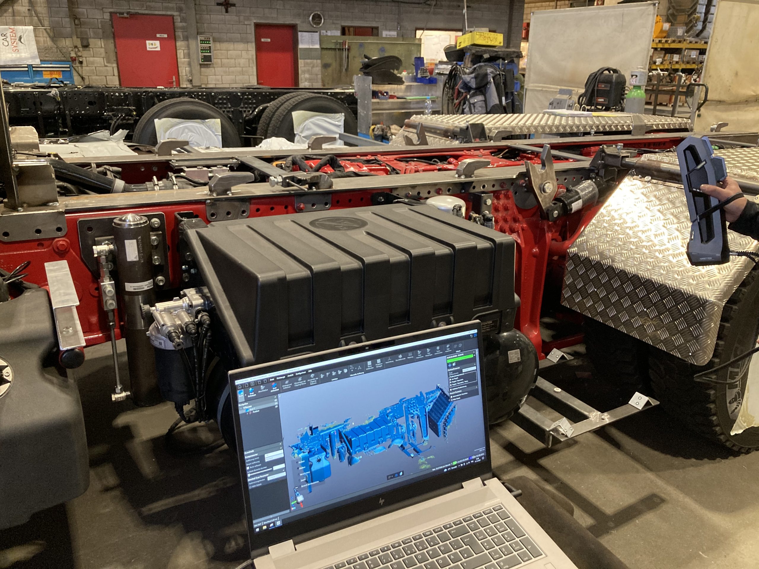 Sutter a menudo tiene que lidiar con grandes áreas de escaneado, como zonas de chasis de camiones, donde la distancia entre los componentes individuales es importante, pero la precisión de la medición debe seguir siendo alta. Por lo tanto, el requisito decisivo a la hora de adquirir el sistema de medición era la precisión.