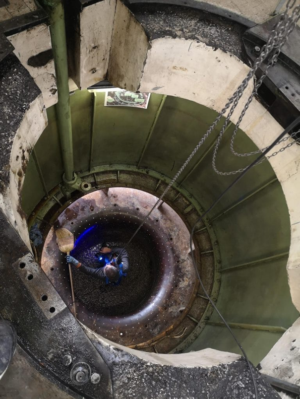 他们根据现有的资料,决定使用便携式蓝光三维扫描仪 HandySCAN BLACK|Elite 来完成该工作流程。工作人员通过高架起重机和工业攀爬安全带下到管道内部。