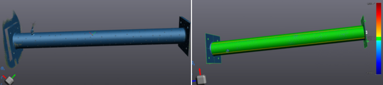三维测量提供了关于部件缺陷的信息。然而,必须使用同等缺陷在一个有限元(FE)环境中单独创建部件的模型,以反映它的几何缺陷和结构缺陷。这些同等缺陷的校准是根据扫描和测试结果进行的。经过一段时间的调整,他们在 VXinspect 软件中评估了扫描结果。诸如 VXinspect 等尺寸检测软件内置有分析功能,例如,它们可以分析管道的圆柱度。