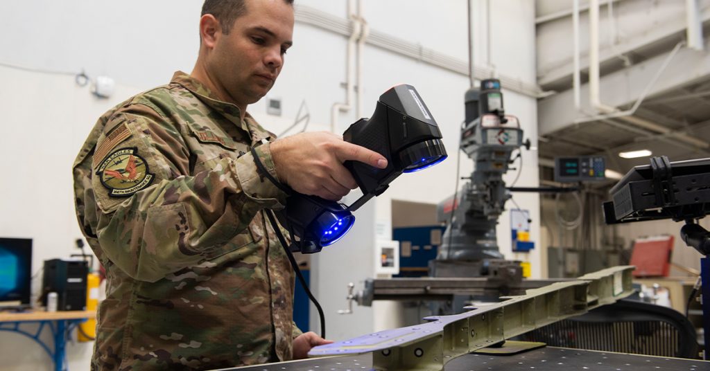 The United States military sector is faced with a host of technical challenges when it comes to maintenance, repair and engineering. Aircraft only have value if they are flight worthy. Personnel responsible for this need efficient and effective means to reduce risks, costs, and maintenance turnaround.3D scanning instruments and technologies remedy discrepancies due to user errors, they allow for time-saving MRO and reverse engineering operations, and are effective for providing CAD files for 3D-printed replacement aircraft parts and prototypes.
