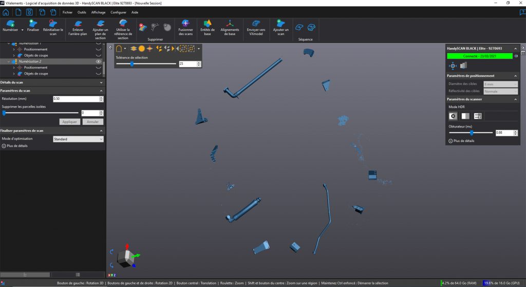 这个项目的第一步是扫描 LEAP-1A 发动机的每一个部件。SkinPack 公司选择了便携式计量级激光三维扫描仪 HandySCAN|BLACK Elite来完成这项任务,因其具有高精度、高测量速度、高分辨率和便携性。这些工作必须在赛峰飞机发动机公司的现场进行,并且不能影响公司的正常活动。