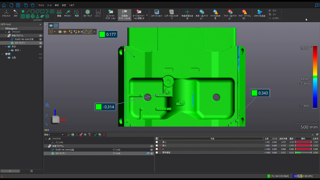 目前,磯沼先生使用 3D 数据来创建工艺数据,然后让系统管理员检查这些工艺数据,最后再将这些工艺数据转化为加工数据。然后,用 MetraSCAN 3D 测量装配好的产品,并将设计数据和测量得到的 3D 数据进行叠加和比较。此外,由于测量结果存储为 3D 数据,这还建立了将产品交付给客户后的质量保证体系。这不仅仅提高了检测效率,业务流程本身也正在进行数字化转型。